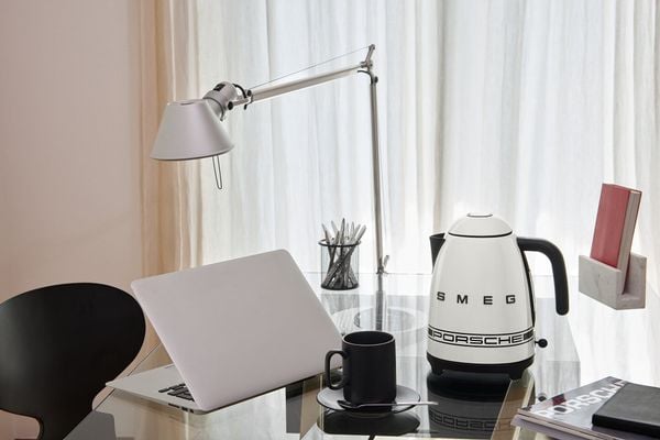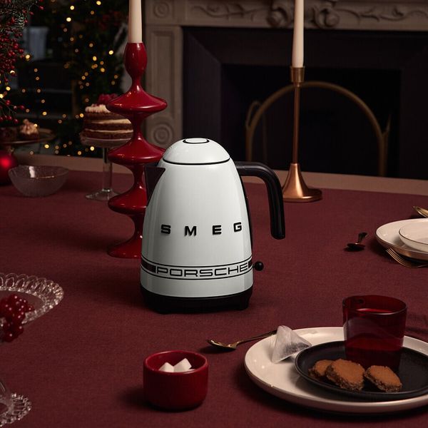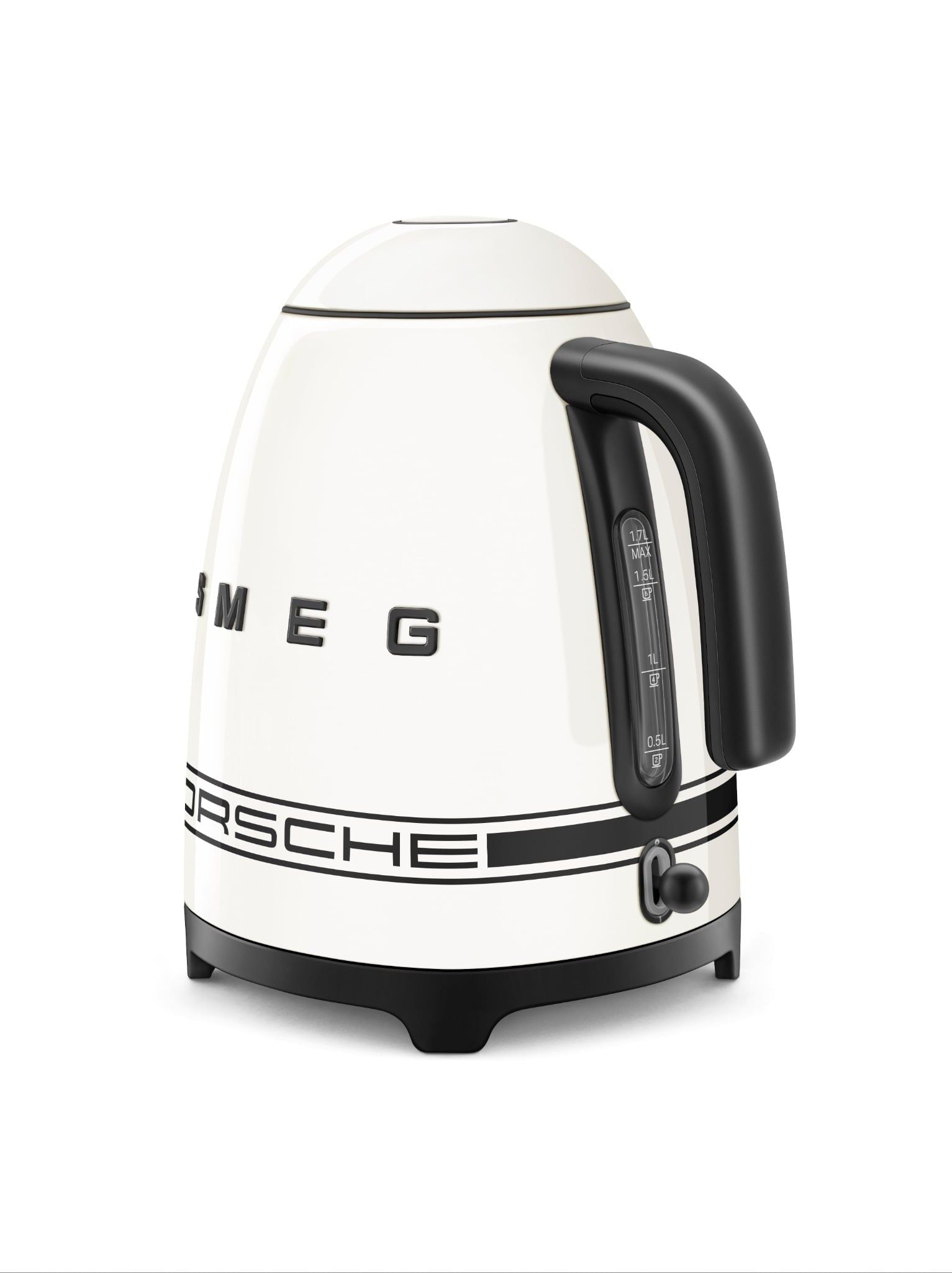Ấm đun nước Porsche x SMEG, kết hợp giữa chức năng và thiết kế. Lý tưởng để pha chế bất kỳ đồ uống nóng nào, sản phẩm kết hợp phong cách thập niên 50 của Smeg với vẻ đẹp biểu tượng của Porsche.