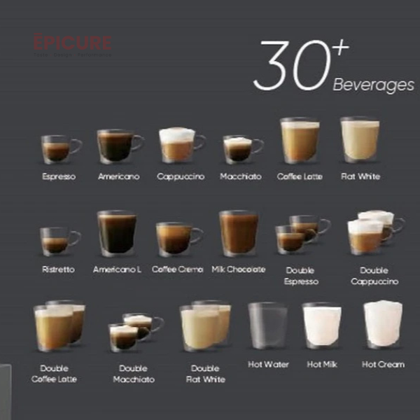 - Vòi cafe và vòi sữa rót cùng lúc (hiệu suất liên tục)