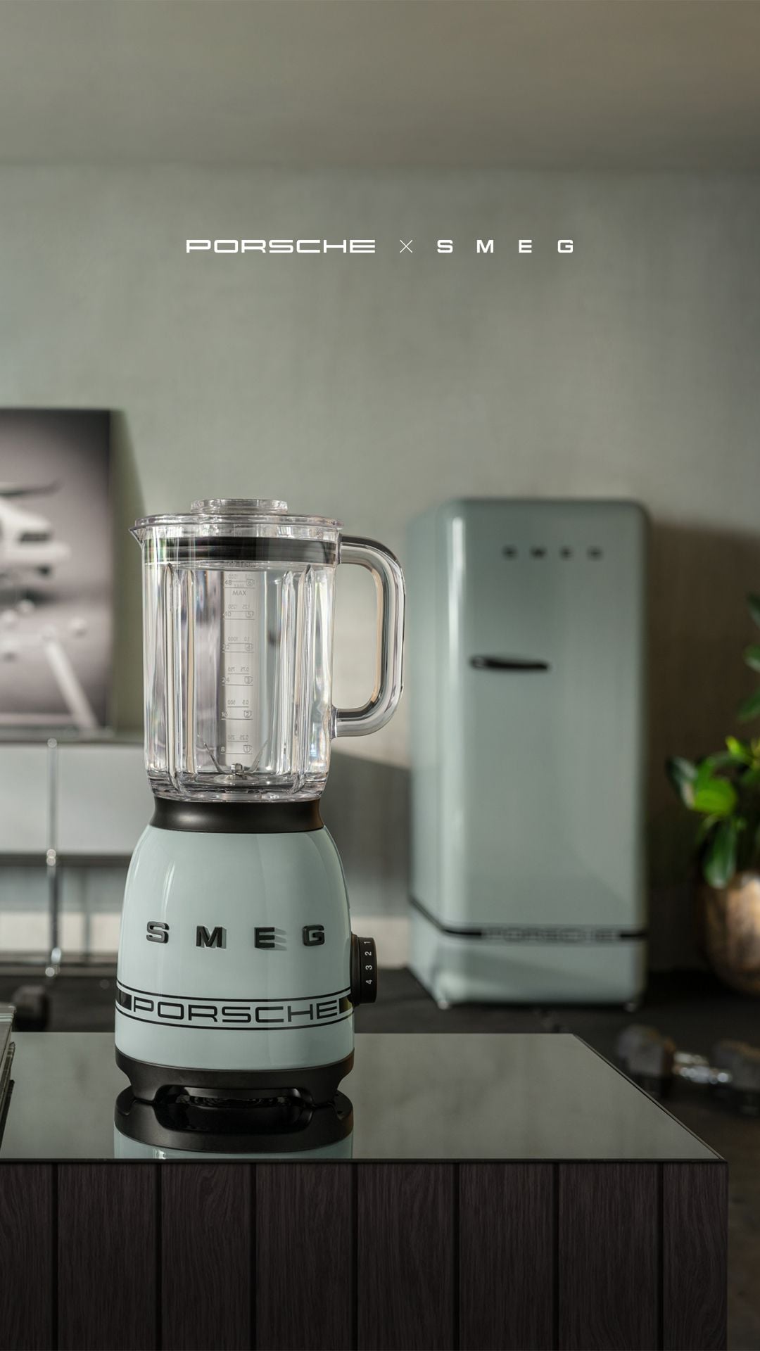 Máy xay sinh tố Porsche x SMEG là một dụng cụ nhà bếp tiện dụng và phong cách. Sản phẩm là sự kết hợp giữa phong cách thập niên 50 của Smeg và thiết kế gọn gàng của Porsche, mang đến sự tiện dụng cho không gian bếp nhà bạn. Thân máy được trang trí sọc Porsche, điểm xuyết các chi tiết màu đen mờ.
